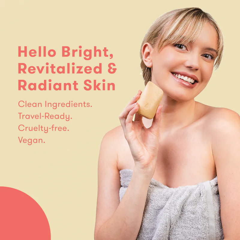 The unique shape of HiBAR’s solid face wash bars is designed to fit comfortably in your hand for easy use. But don’t be fooled by the compact size—each HiBAR RENEW brightening facial wash bar lasts as long as one full bottle of liquid brightening face wash.
